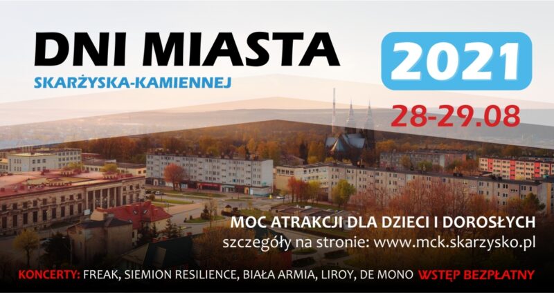 W ostatni weekend sierpnia (28 – 29 sierpnia) będziemy świętować tegoroczne Dni Miasta. W programie huczne otwarcie Skarland Pumptrack&Skatepark, koncerty (wystąpią De Mono i LIROY) oraz Parada Aut Amerykańskich i Kabrioletów ulicami miasta.