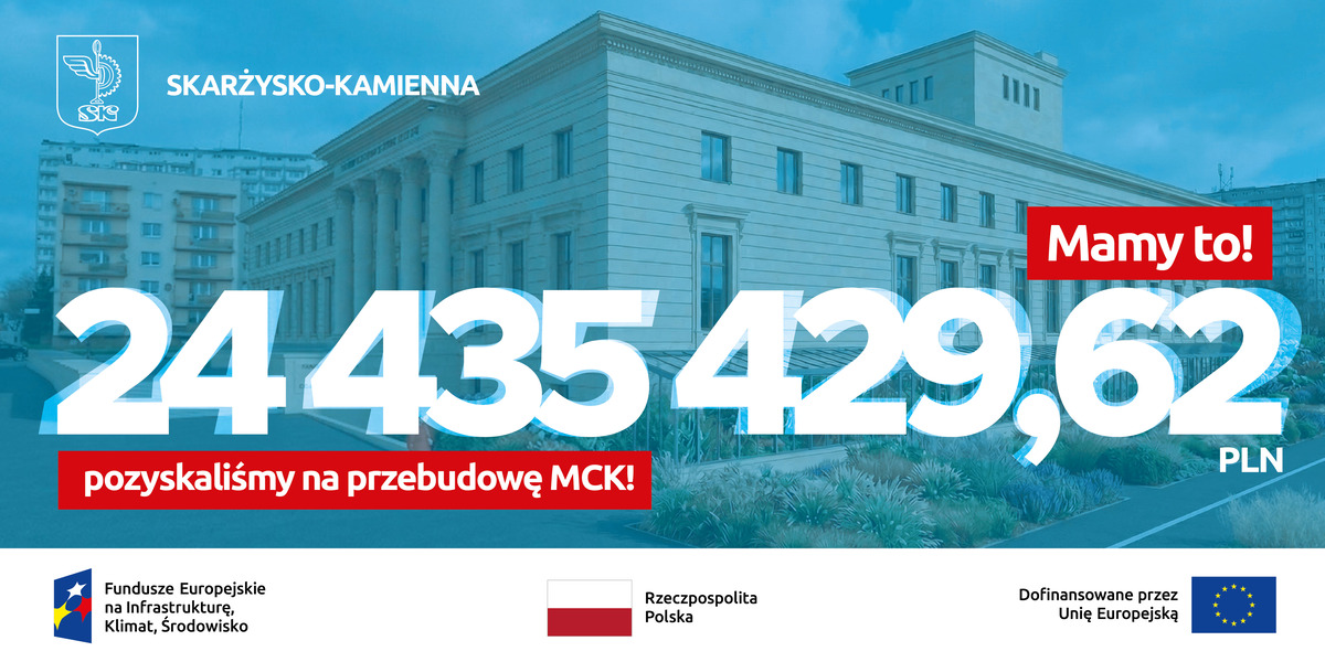 Skarżysko-Kamienna pozyskało ponad 24 mln zł dofinansowania z Ministerstwa Kultury i Dziedzictwa Narodowego na kompleksową modernizację Miejskiego Centrum Kultury im. Leopolda Staffa. To największy projekt inwestycyjny w obszarze kultury w historii miasta.