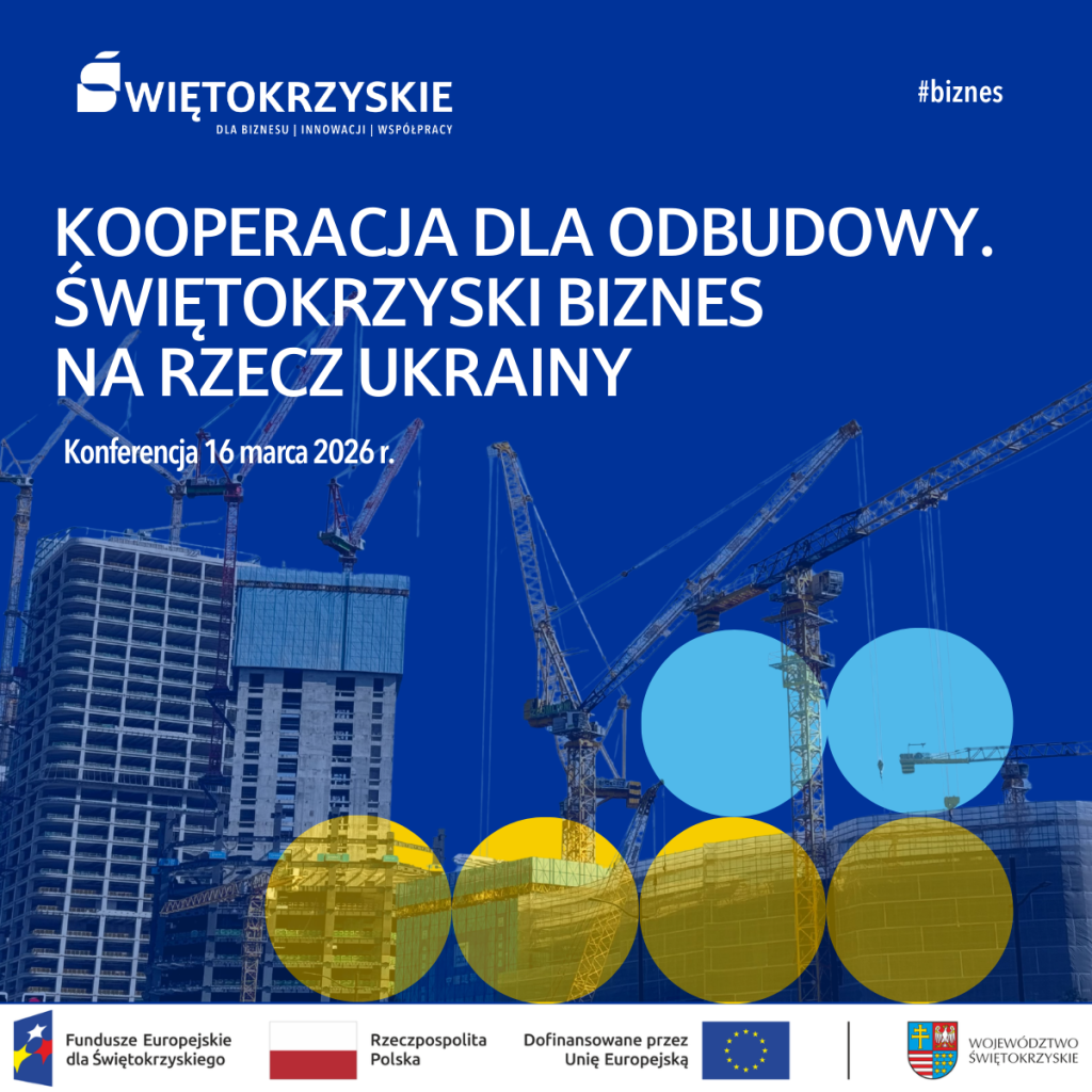 Urząd Marszałkowski Województwa Świętokrzyskiego zaprasza na konferencję „Kooperacja dla odbudowy. Świętokrzyski biznes na rzecz Ukrainy”. Wydarzenie odbędzie się 16-17 marca 2026 roku w Kielcach.