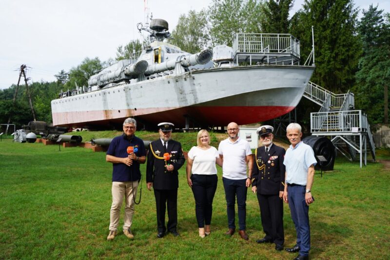 Obok uczestników audycji „Lata z radiem”: prezesa Stowarzyszenia Rezerwistów Romana Szychowskiego, dyrektora Muzeum Grzegorza Bienia i szefa muzealnego Działu Historyczno- Edukacyjnego i Promocji Piotra Kołodziejskiego, całość obserwowali prezydent Skarżyska Arkadiusz Bogucki i jego zastępczyni Iwona Jeziorska. Wspierał ich kolejny marynarz – Zenon Pawłowski.