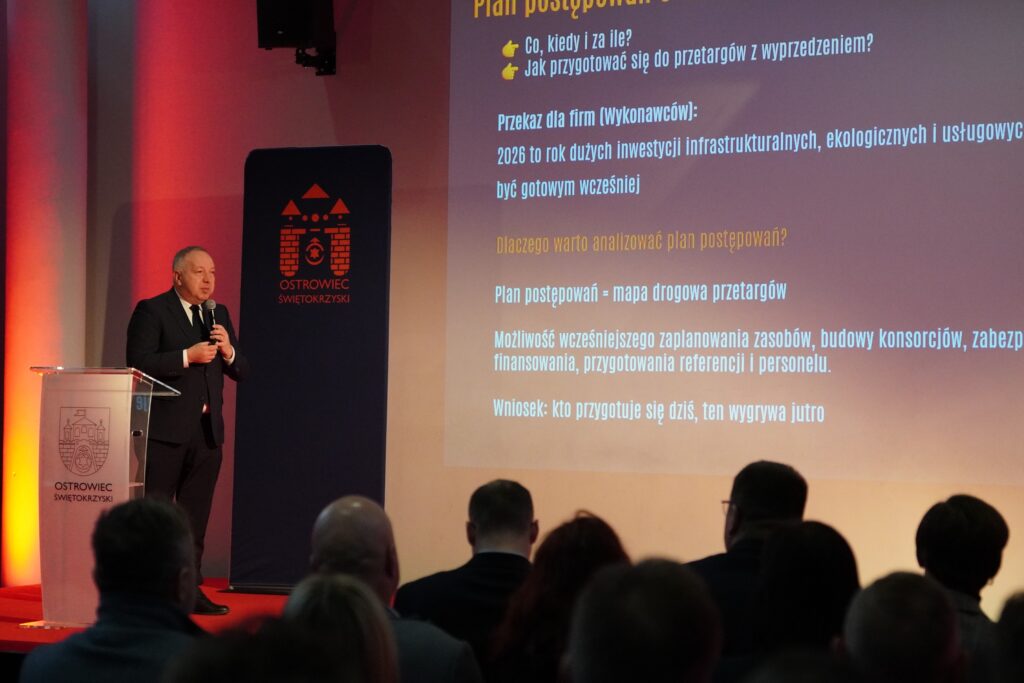 Podczas spotkania przedstawiciele trzech samorządów: Artur Łakomiec – prezydent Ostrowca Świętokrzyskiego, Marek Materek – prezydent Starachowic oraz Arkadiusz Bogucki – prezydent Skarżyska-Kamiennej zaprezentowali planowane na 2026 rok inwestycje, zakupy, usługi oraz roboty budowlane. Dla przedsiębiorców była to doskonała okazja do poznania nadchodzących postępowań przetargowych i odpowiedniego przygotowania się do udziału w zamówieniach publicznych.