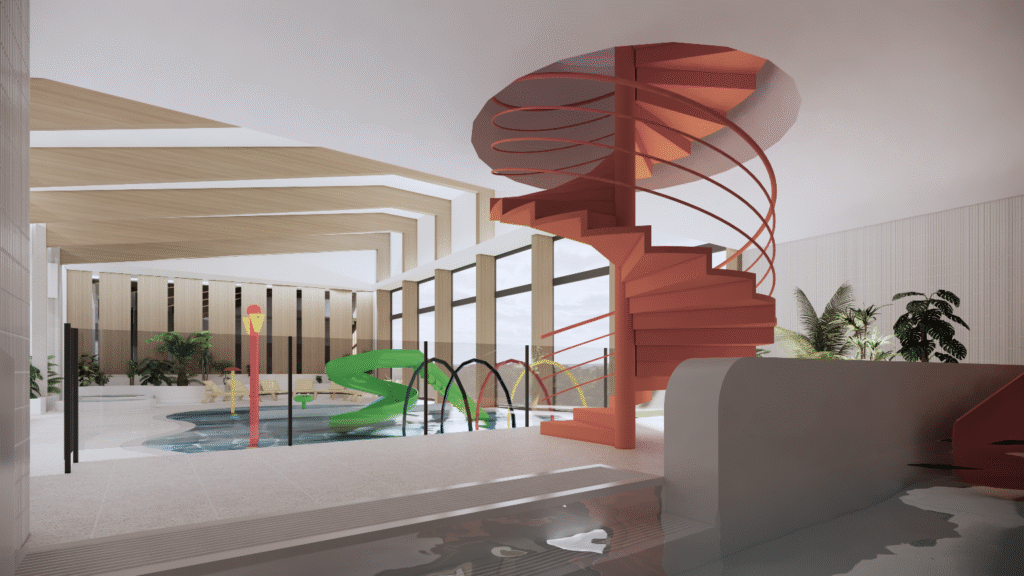 Zakres inwestycji obejmuje nie tylko modernizację istniejącego obiektu, ale także budowę nowej niecki basenowej oraz szeregu atrakcji wodnych i rekreacyjnych. W pływalni znajdzie się nowa niecka, duża całoroczna zjeżdżalnia, wanny z hydromasażem oraz wodny plac zabaw dla dzieci. Zaplanowano również trybuny, część gastronomiczną, kompleks saun i salę fitness. W otoczeniu obiektu powstaną elementy małej architektury, boisko do crossmintona oraz parking z ładowarką dla samochodów elektrycznych.