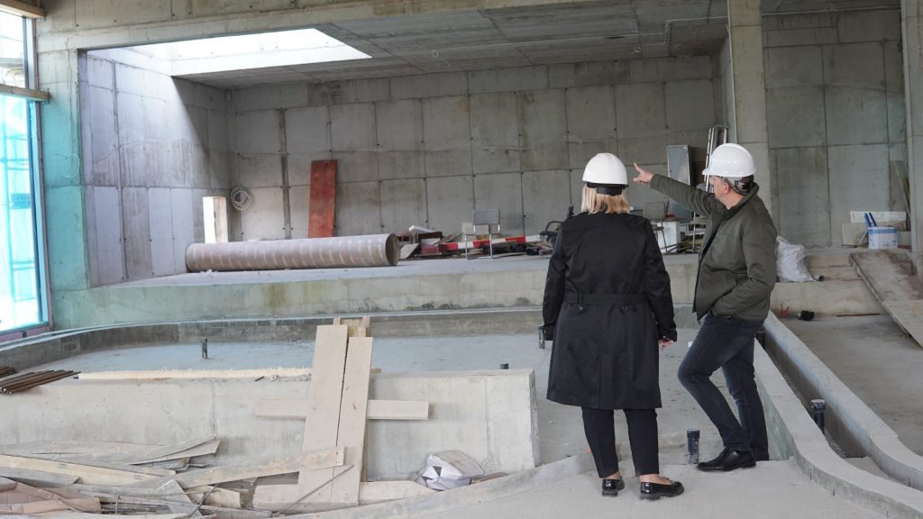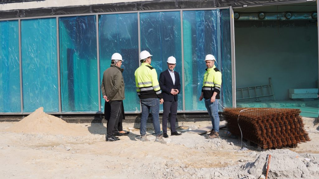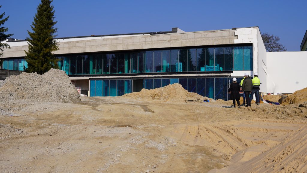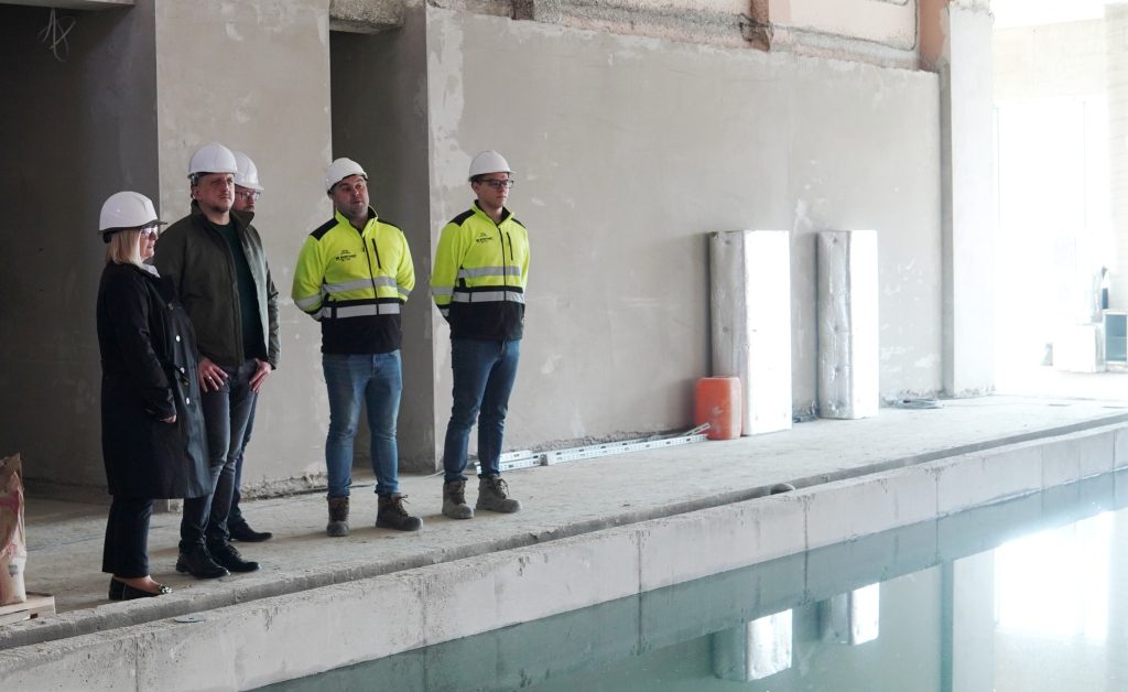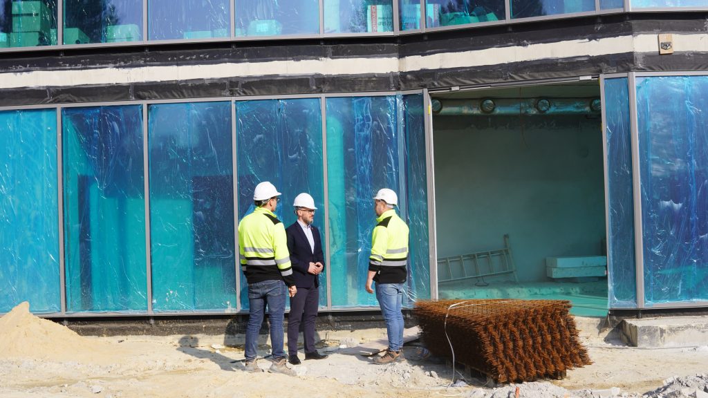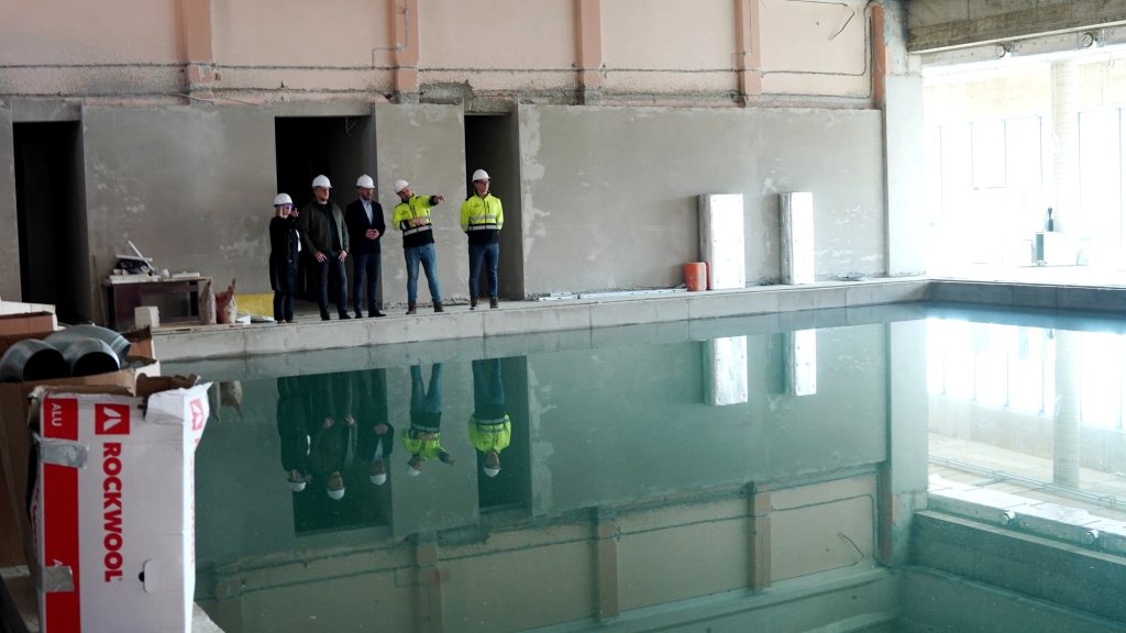 Podczas wizyty na terenie budowy modernizowanej pływalni miejskiej Prezydent Skarżyska-Kamiennej Arkadiusz Bogucki wraz zastępcami: Iwoną Jeziorską i Konradem Wikarjuszem zapoznali się z postępem prowadzonych prac. Spotkali się również z wykonawcą inwestycji, który zapewnił, że realizacja zadania przebiega zgodnie z przyjętym harmonogramem.