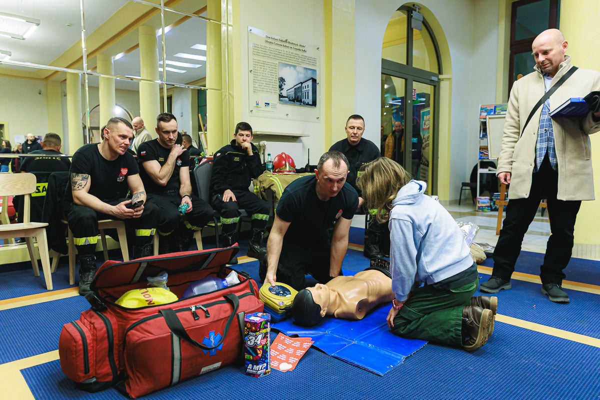 Atrakcje czekały na uczestników także w korytarzach MCK – od stoisk z rękodziełem, przez strefę gastronomiczną z domowymi wypiekami i przekąskami, aż po pamiątkowe zdjęcia przygotowywane przez Klub Fotograficzny ZOOM. Tradycyjnym i wzruszającym zwieńczeniem finału było „Światełko do Nieba”.