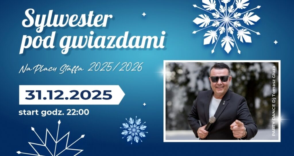 Zapraszamy wszystkich mieszkańców na niezapomnianą, pełną energii zabawę sylwestrową na Placu Staffa! W tę wyjątkową noc pożegnamy rok 2025 i z radością przywitamy Nowy Rok 2026 w rytmach największych hitów ostatnich lat.