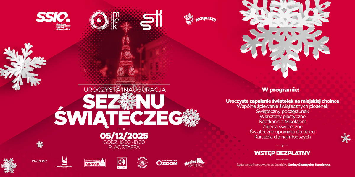 Prezydent Miasta Skarżyska-Kamiennej wraz z Miejskim Centrum Kultury serdecznie zapraszają wszystkich mieszkańców – dzieci, młodzież, dorosłych i seniorów – na uroczyste rozświetlenie Choinki Miejskiej. Wydarzenie odbędzie się w piątek 5 grudnia potrwa w godzinach 16.00 – 18.00, a jego atmosfera z pewnością wprowadzi nas w wyjątkowy, przedświąteczny nastrój.