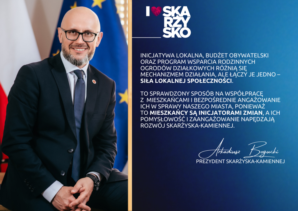 Skarżysko-Kamienna konsekwentnie rozwija narzędzia, dzięki którym mieszkańcy mogą realnie współdecydować o swoim otoczeniu i kierunkach rozwoju miasta. Uruchomionych zostało kilka programów wspierających oddolne inicjatywy i aktywność lokalnej społeczności – od Budżetu Obywatelskiego, przez Inicjatywę Lokalną, po program wsparcia dla Rodzinnych Ogrodów Działkowych.