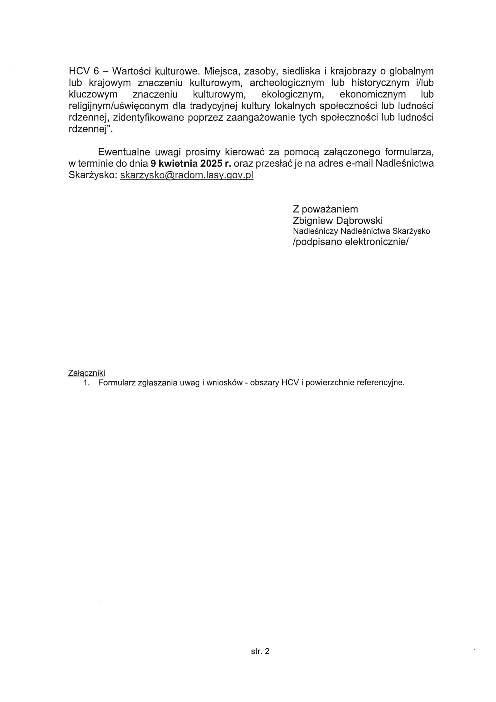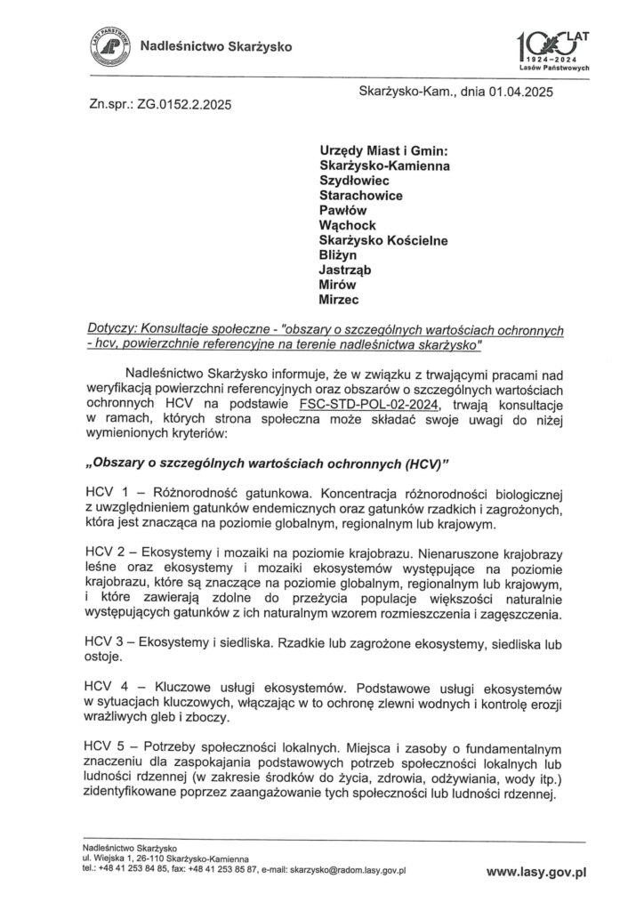 Informacja Nadleśnictwa Skarżysko na temat konsultacji społecznych dla obszarów o szczególnych wartościach ochronnych Izabela Szwagierek 8 miesięcy ago DO POBRANIA:FORMULARZ ZGŁOSZENIA